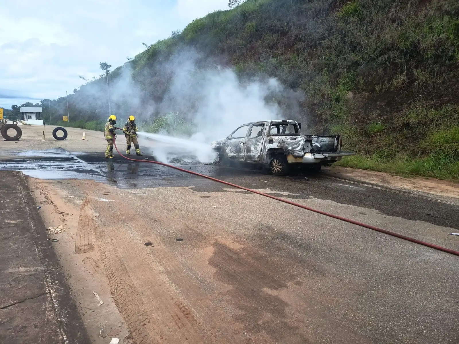 Uma caminhonete VW Amarok ficou completamente destruída após pegar fogo na tarde desta quarta-feira (26), na Rodovia MGC-129, na altura do km 102, em Itabira. Não houve registro de feridos.